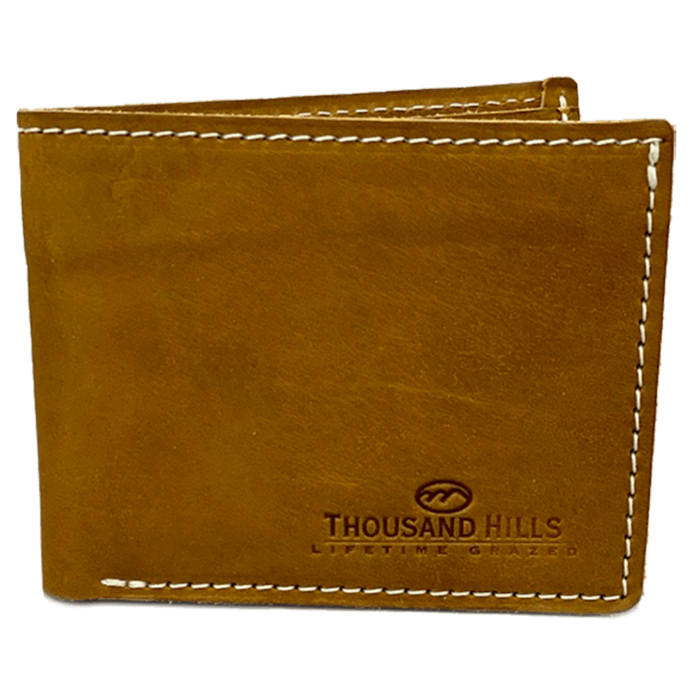 Unit price / perThis wallet was made with leather sourced from Thousand Hills cattle that are raised using regenerative practices. They were minimally processed using a vege-tan practice that utilizes vegetable oil rather than harsh chemicals. This is the first product in an on going regenerative leather project from Thousand Hills to utilize the full animal from nose to tail.