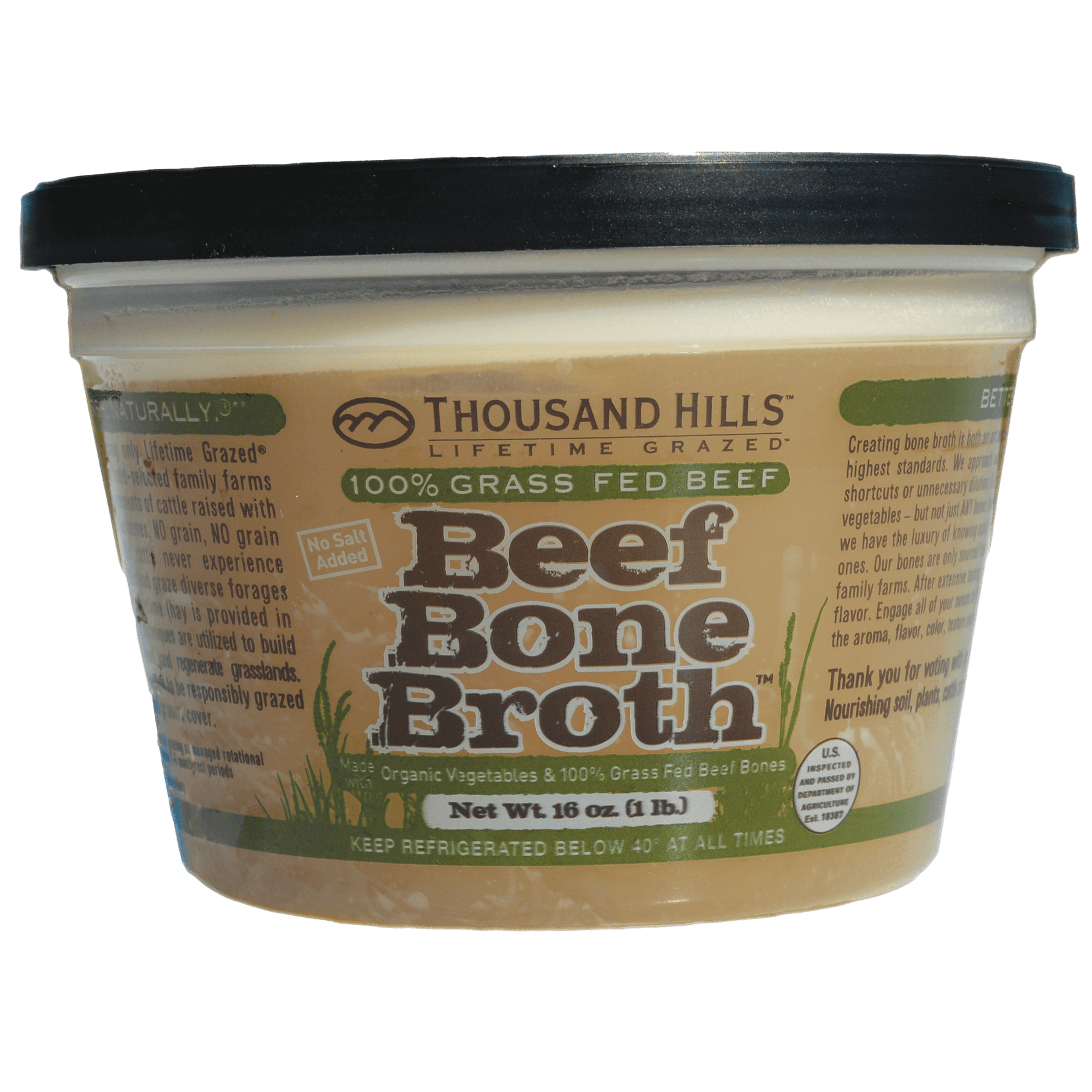 Ingredients:100% Grass Fed Regenerative Beef Broth, water, Grass fed beef bones, organic onion, organic carrots, organic celery, apple cider vinegar (apple cider vinegar reduced with water to 5% acidity).