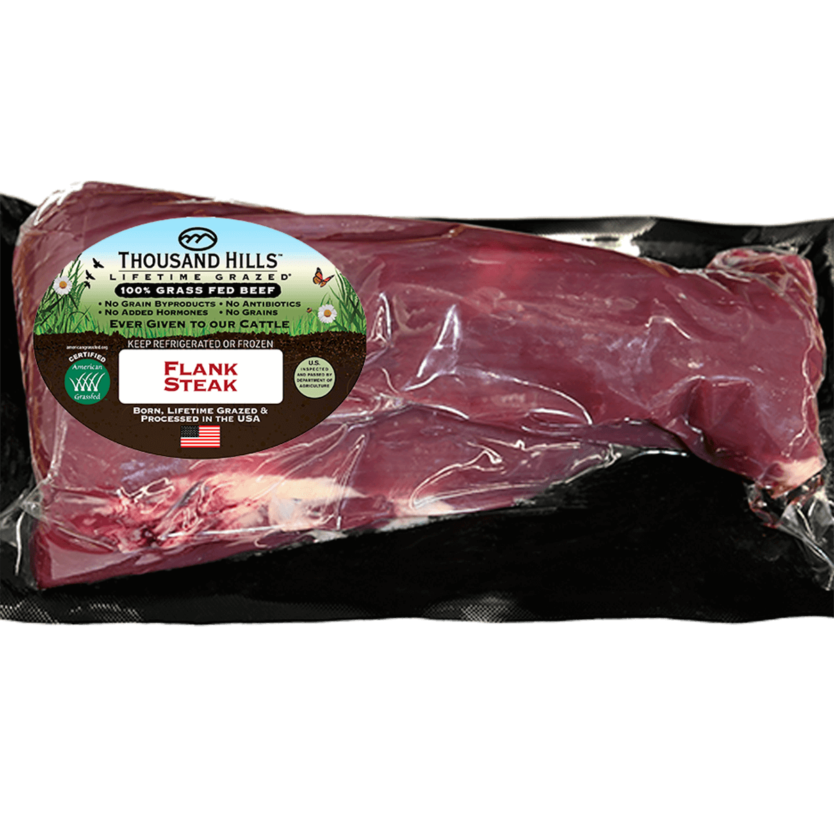 Unit price / perRaised with no antibiotics, no added hormones, and no grains are ever given to our cattle. 5 units per case each flank steak is approximately 20oz units with the case being approximately 6.25lbs.