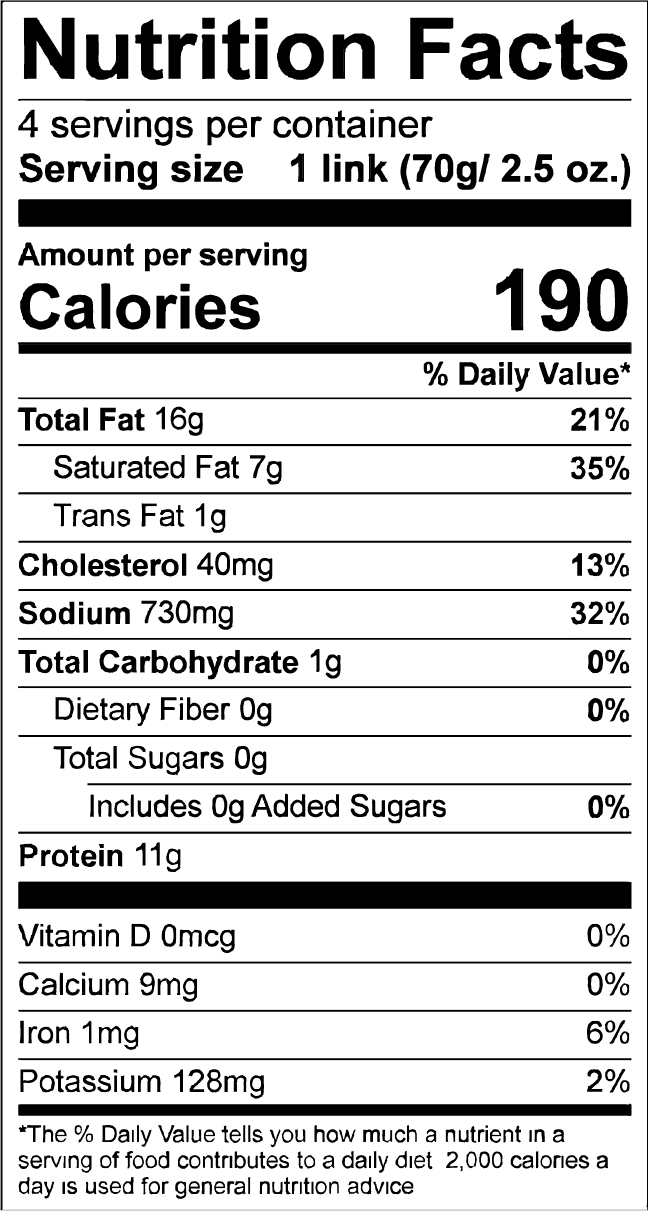 Ingredients: 100% Grass Fed Regenerative Beef, water, sea salt, contains 2% or less of the following: cane sugar, ground mustard seed, white pepper, coriander, mace, paprika, and celery juice powder.