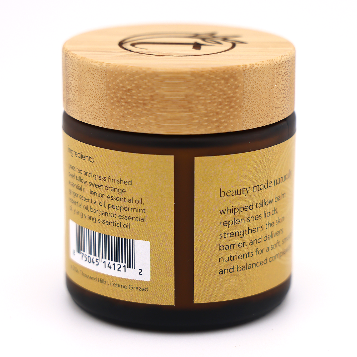 Unit price / perBright, uplifting, and balanced, our Citrus Blend Whipped Tallow is a luxurious, natural moisturizer made from 100% regeneratively raised, grass fed beef tallow. Carefully rendered and whipped to a light, airy texture, it melts effortlessly into your skin, delivering long-lasting hydration.